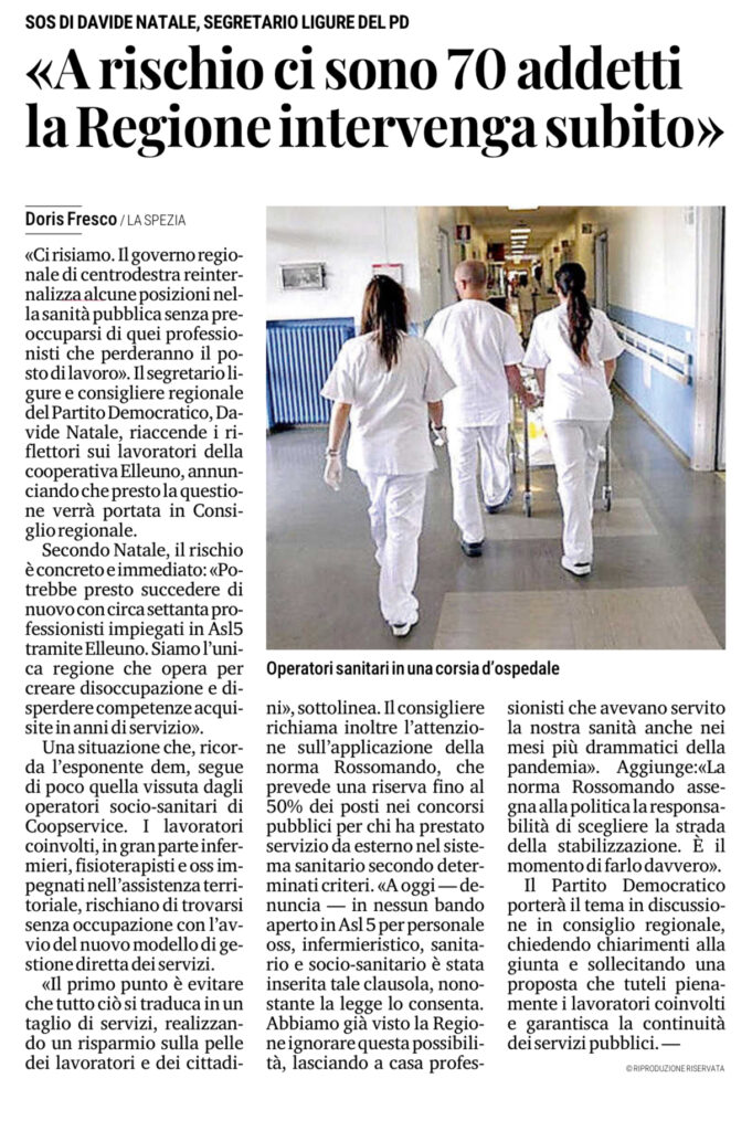 “Ci risiamo. Il governo regionale della destra reinternalizza alcune posizioni nella sanità pubblica senza preoccuparsi di quei professionisti che perderanno il posto di lavoro. E’ già successo con le oss di Coopservice, letteralmente scaricate dopo aver ricevuto pubblici encomi durante la pandemia di Covid 19. Potrebbe presto succedere di nuovo con circa settanta professionisti impiegati in Asl 5 con la cooperativa Elleuno. Siamo l’unica regione che opera per creare disoccupazione e disperdere competenze acquisite in anni di onorato servizio”.